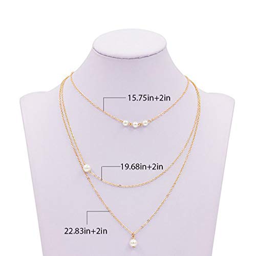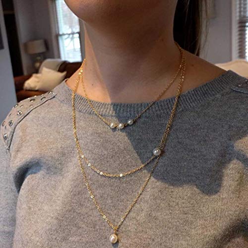 Boho Layered Choker Necklace Gold Pearl Pendant Necklaces Chain Jewelry for Women and Girls