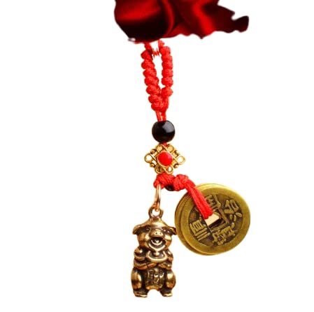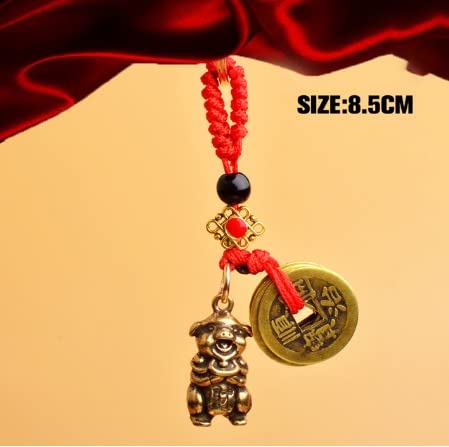 pig - Vintage Brass Zodiac DragonKeychains Red Rope Guardian God Five Emperors Coins Pendant Car Key Rings Hangings Fashion Keyrings