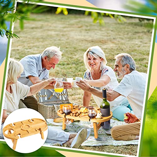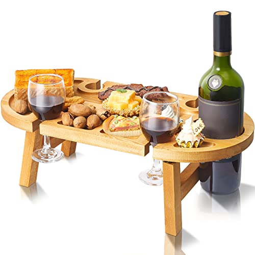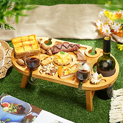 Taiyin Portable Wine Picnic Table Foldable Champagne Picnic Snack Table Wooden Wine and Snack Table for Picnic Outdoor, Camping, Park, Beach, Indoor, Wine Lover Gift