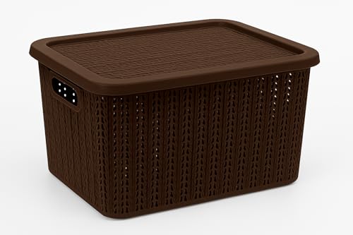 Sofia Small Plastic Storage Box with Lid – Multi Use Stylish Mesh Design, 28 x 19 x 13 cm for Storing Tools, Clothes and Household Items – Beige