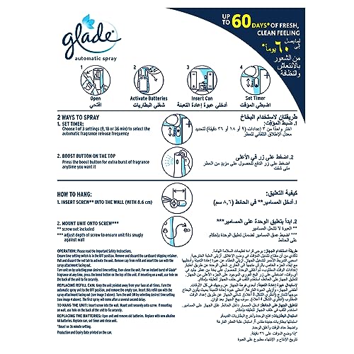 - Contains: 1 Glade automatic holder, 2 AA batteries and 1 Glade automatic refill