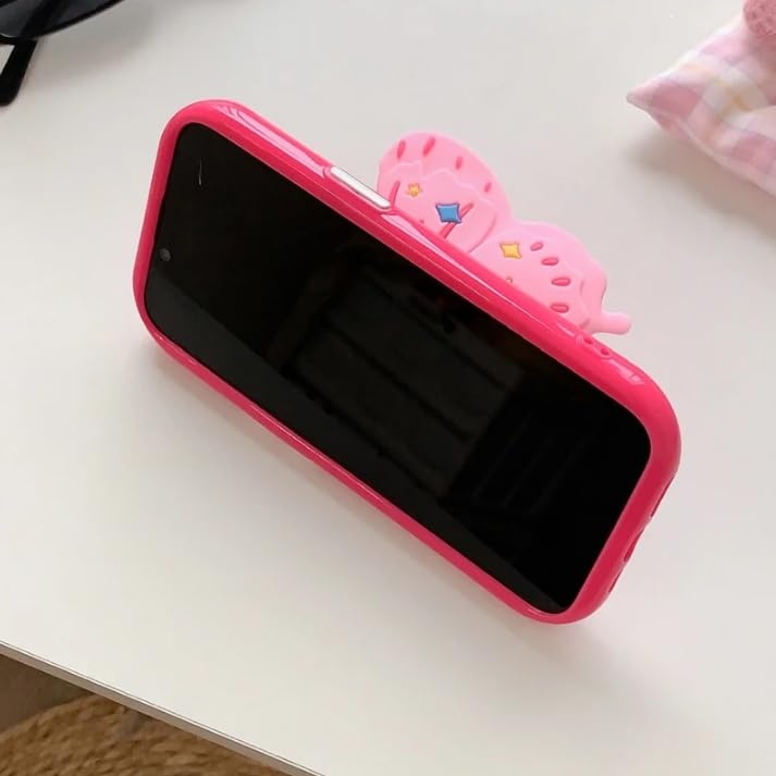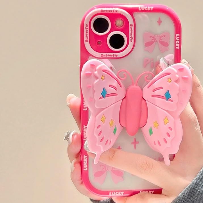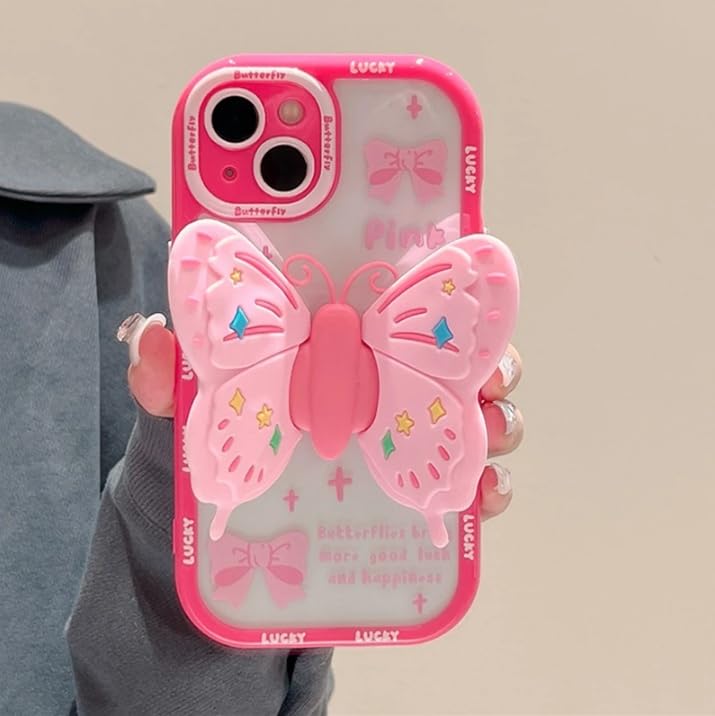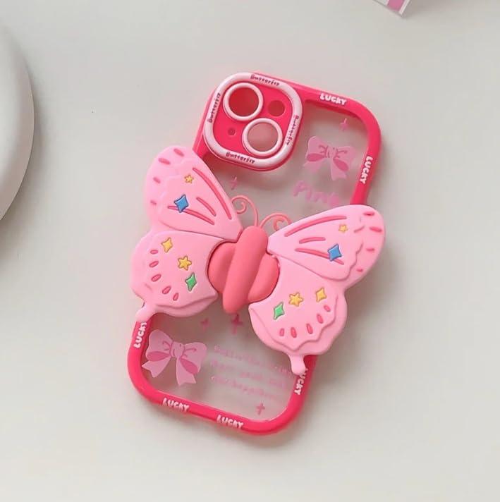 Next Store Next Store Phone Case, Pink Butterfly 3D Cute Cover with Folding Wings and Stand, Soft Silicone Shockproof Case for iPhone 14 Pro