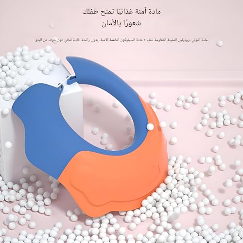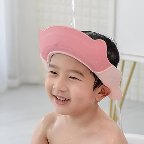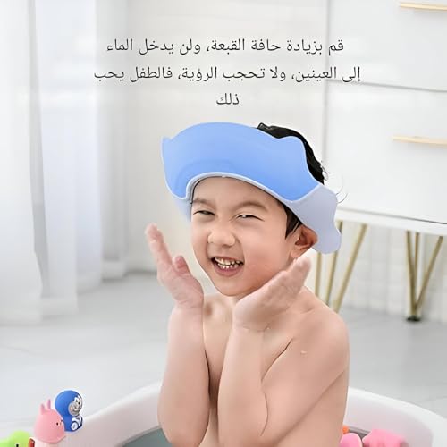- This adjustable baby shower cap is made from non-toxic, soft, flexible, lightweight, and elastic materials like PP and silicone, ensuring gentle protection for a child's delicate skin without causing any harm with smooth edges. It features an adjustable silicone strap on the back to fit children with head circumferences between 45cm and 70cm, providing a secure and comfortable fit that won't slip off, making it suitable for children over 6 months old and easy for parents to use during bathing or