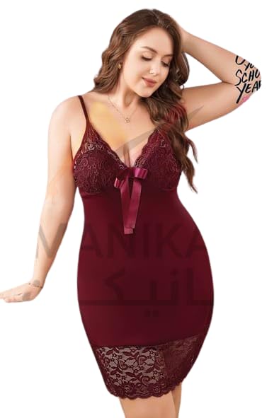 MANIKAN Women's Lingerie Lace Trim Satin Chemise V-Neck Sleepwear with Bow Detail made of soft and cute fabric material bodycon Mini dress