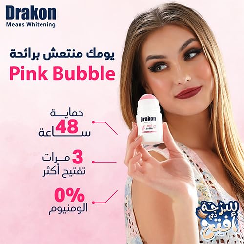 Drakon Roll-on Deodorant 5in1 Pink Bubble Scent, 48h Protection For Sensitive Under-arm Aluminum Chloride& Alcohol Free - 50 ML