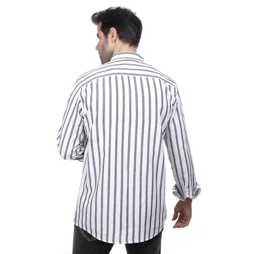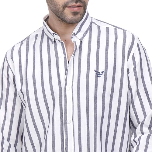 Coup Vertical Stripe Linen Button Down Shirt Blue 3XL