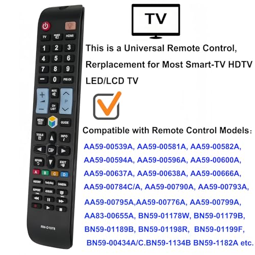 - Universal Remote Control RM-D1078+ for Samsung Smart-TV HDTV LED/LCD TV, Compatible with Most Samsung Smart TVs.
