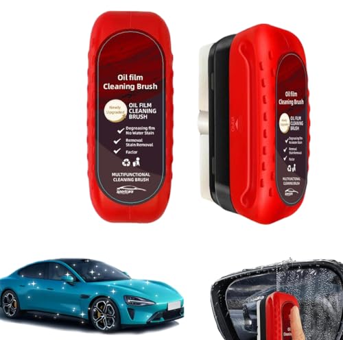 فرشاة تنظيف لإزالة طبقة الزيت من السيارة، أداة تنظيف عالمية الكل في واحد لتنظيف زجاج السيارة تمنع تراكم مياه المطر والضباب من اوين، قطعتان