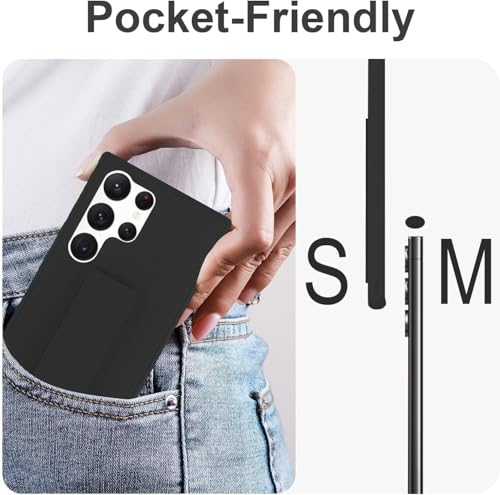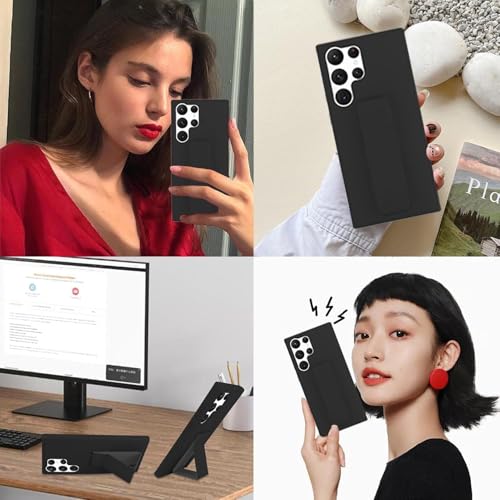 Case for Samsung Galaxy A15 Case with Hand Strap, Built-in Kickstand, Magnetic Stand Design Ultra-Slim Shockproof Silicone Cover for A15 (Black, A15)