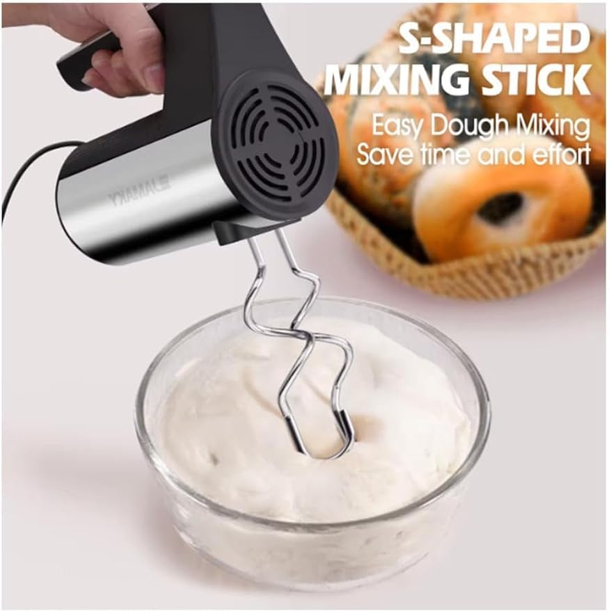 - Durable Stainless Steel Beaters & Dough Hooks – Includes a set of detachable stainless steel beaters and dough hooks that are rust-resistant, easy to clean, and perfect for heavy-duty mixing.