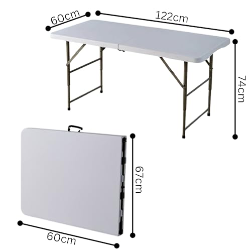 - This folding 4ft Trestle Table is height adjustable from 49-74cm
