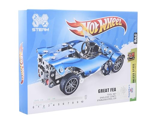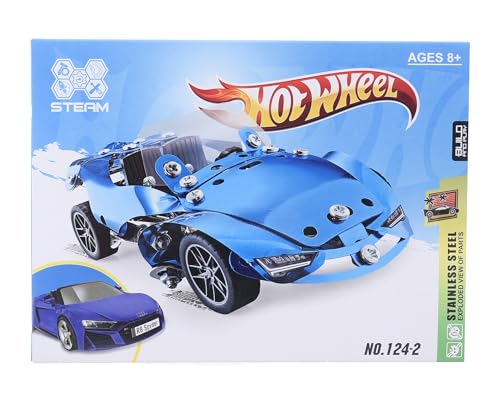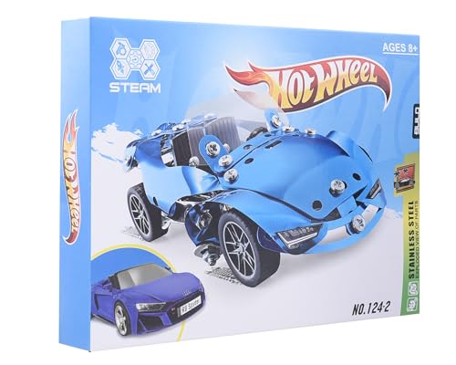 - Contains metal pieces to build a detailed blue car with authentic mechanical design.