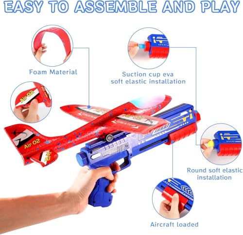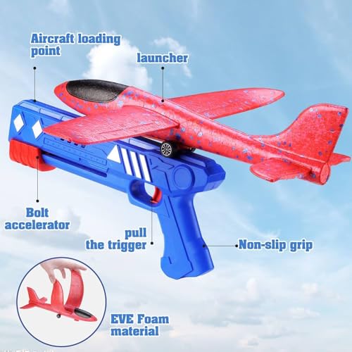 Airplane Toys with Launcher, Foam Glider Planes, One-Click Ejection Model Foam Airplane Shooting, Throwing Plane, Kids Outdoor Toys Yard Games for girls and boys