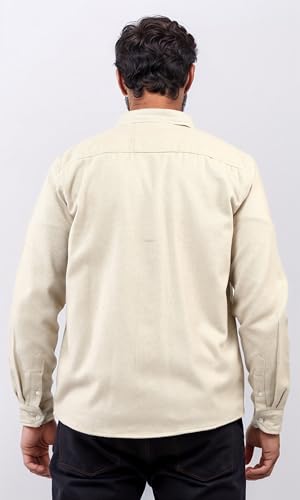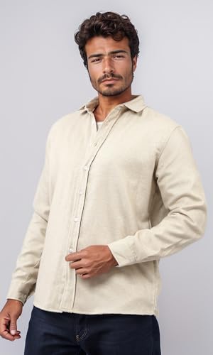 ريفين قميص قطن باكمام طويلة وازرار امامية للرجال - بيج عصري