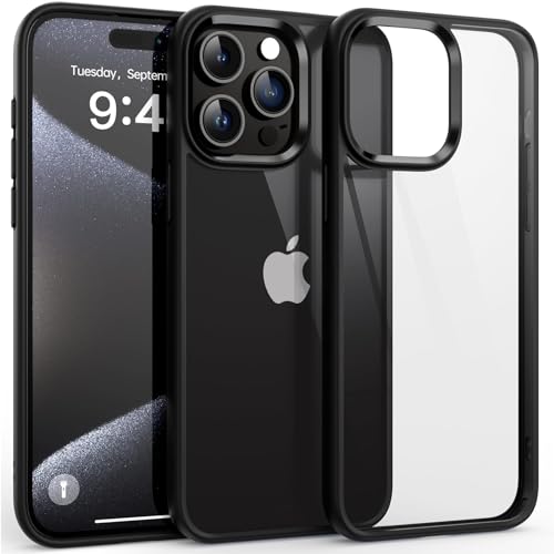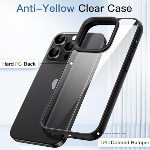 Dl3 Mobilak Case For iPhone 15 Pro - 6.1-Inch, Crystal Clear [Not Yellowing] [Military Grade Drop Protection] Shockproof Protective Slim Cover (Black)