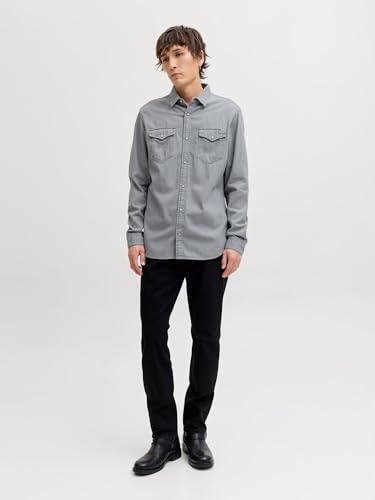 Jack & Jones Mens Jjesheridan Shirt L/S Shirt, Color Blue (Medium Blue Denim Fit:slim), Size XXL