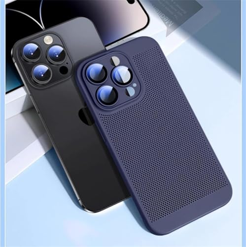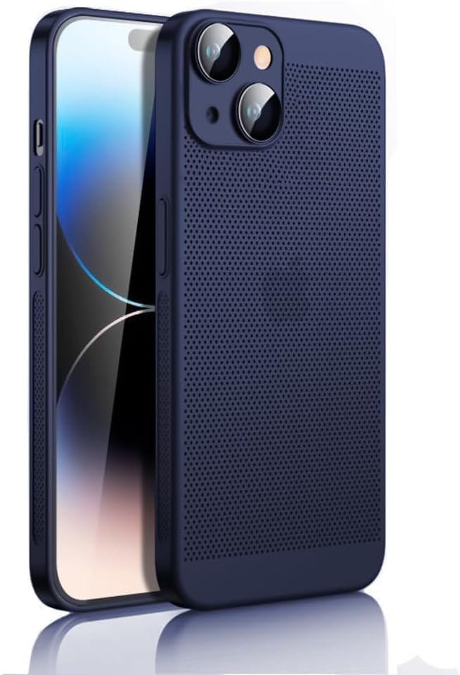 Case For iPhone 15 Plus 6.7-Inch Heat Dissipation Case with Built-in Camera Lens Protector Slim Fit Breathable Cooling Anti-Fingerprint Hard PC Back Shockproof Cover (Blue)