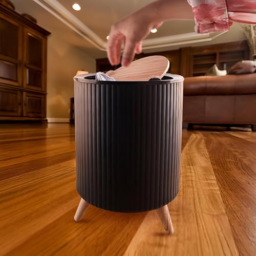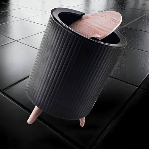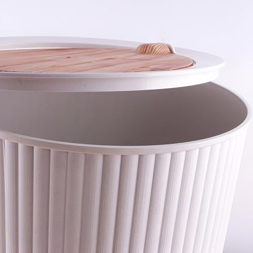 سلة المهملات البلاستيكية مع غطاء خشبي دوار للمطبخ والحمام متعددة الأغراض، مناسبة للمكتب وغرفة المعيشة ومنطقة تناول الطعام (ابيض)