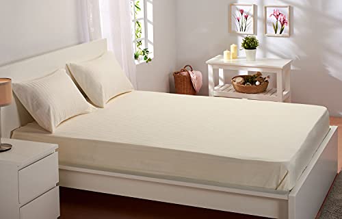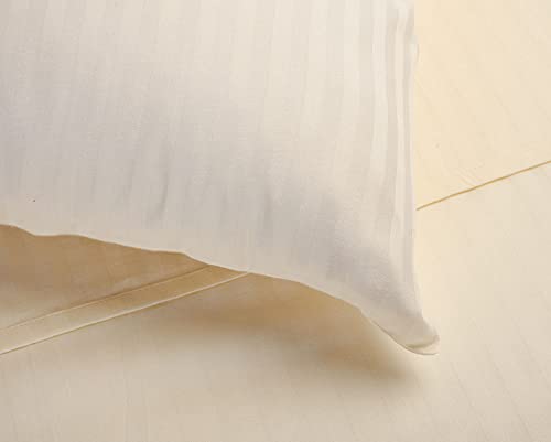 Solid Satin Stripe Cotton Bed Sheet Set, 3 Pieces, 220 X 240 cm - Creamy