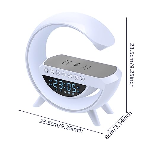 - 【Multifunctional Night Light】Atmosphere Light:9.25 inch x 3.14 inch x 9.25 inch (23.5 cm * 8 cm * 23.5 cm), wireless phone charger, Bluetooth speaker, sleep lamp, bedside lamp, clock, alarm clock all in one. You can use this wonderful night light while working, studying, reading and sleeping.