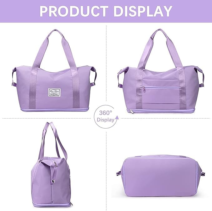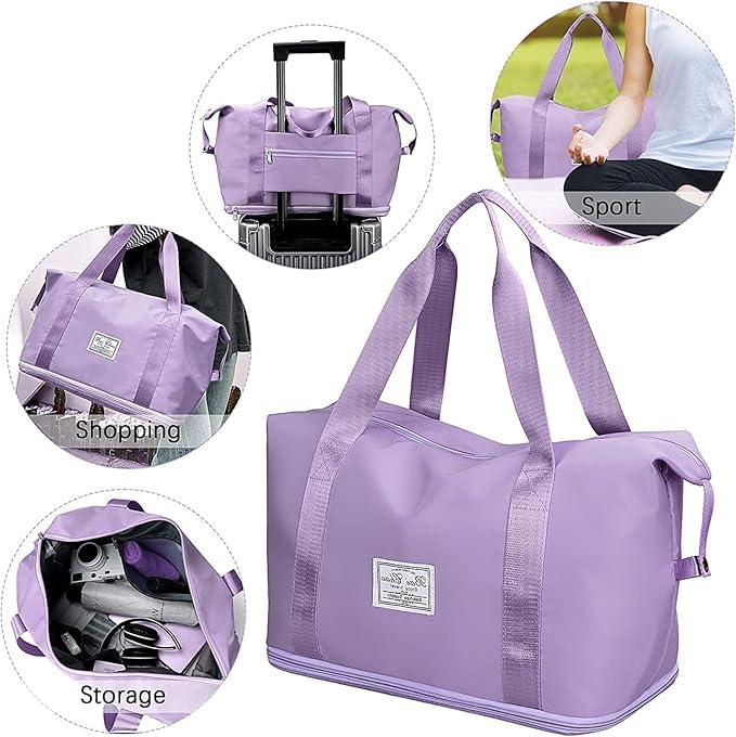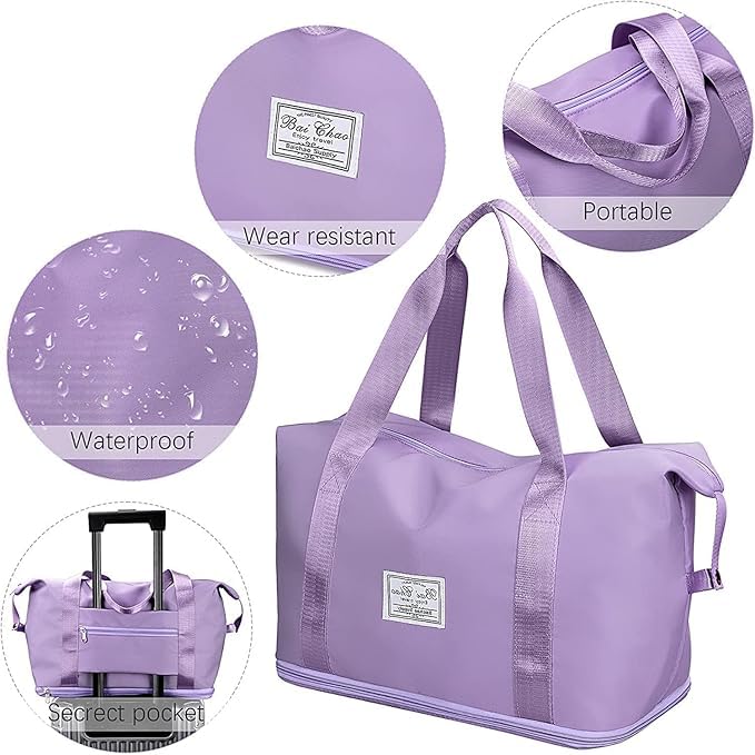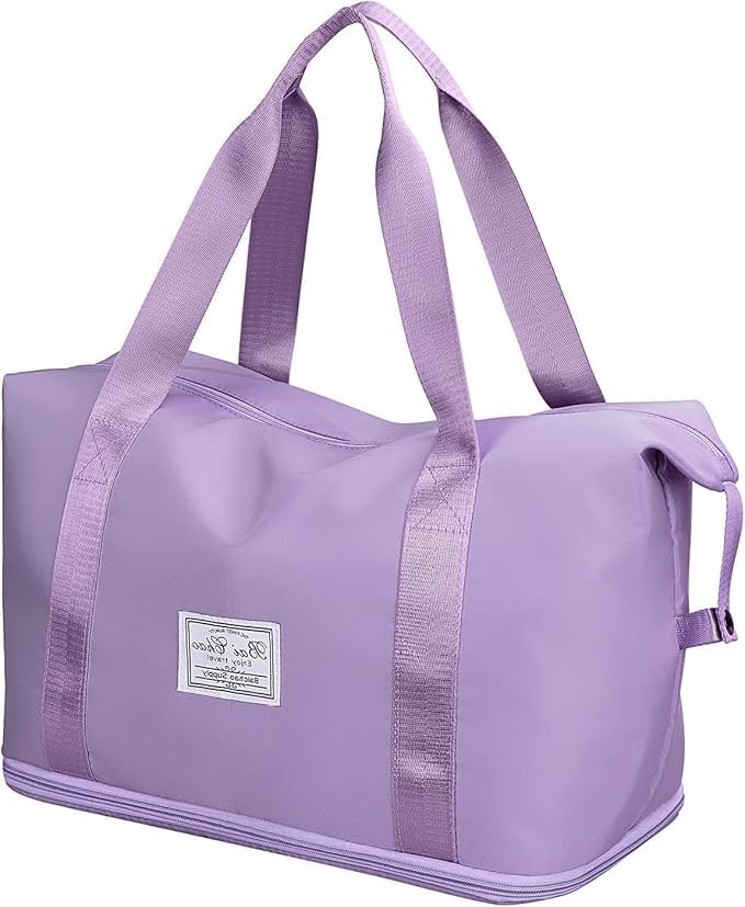 Happy home Expandable Travel Bag for Men and Women, Sports Gym Bag, Airplane Carry On Bag, Large Capacity Bag for Women, Single Shoulder Weekender Bag (purple)