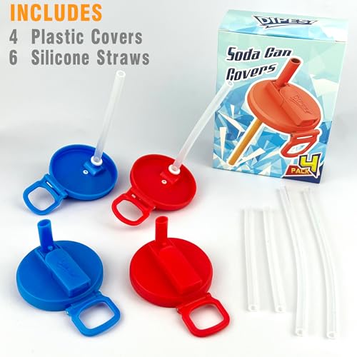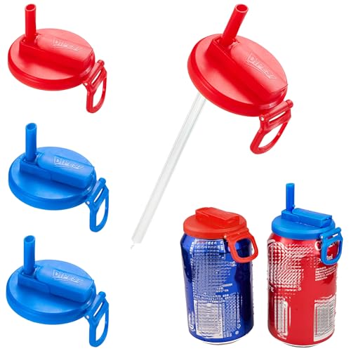 Straws Soda Can Covers Can Lids with 6 Silicone Straws 4pack (2Blue & 2Red)