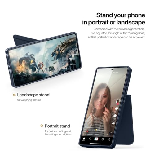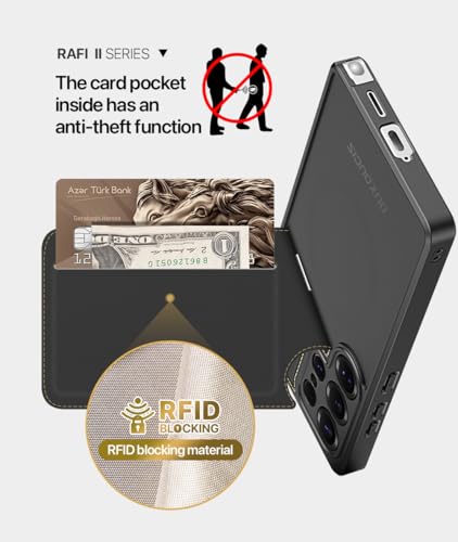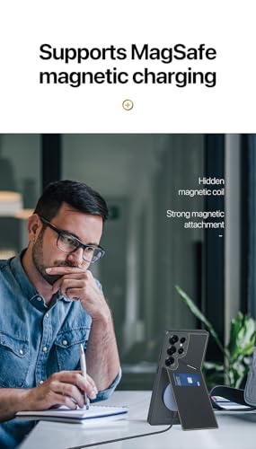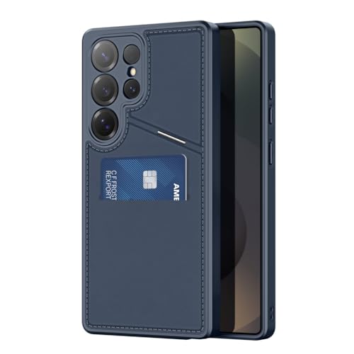 جراب حماية مقاوم للصدمات شديد التحمل من جلد البولي يوريثين المقاوم للحرارة لموبايل s25 ultra الترا مع حامل بطاقات [ومتوافق مع ماج سيف] (ازرق)