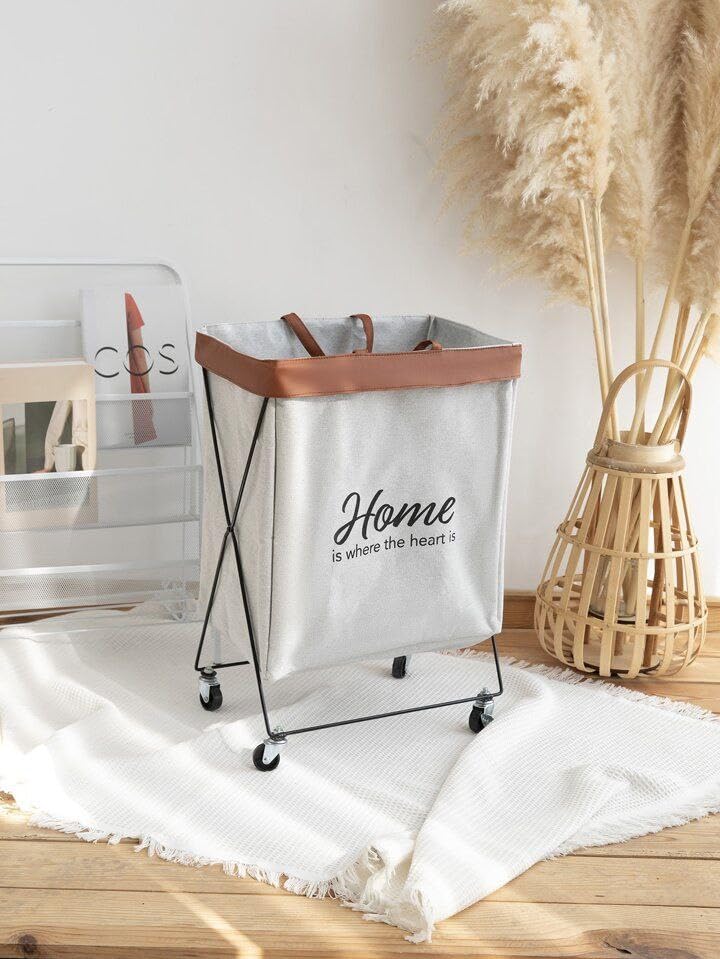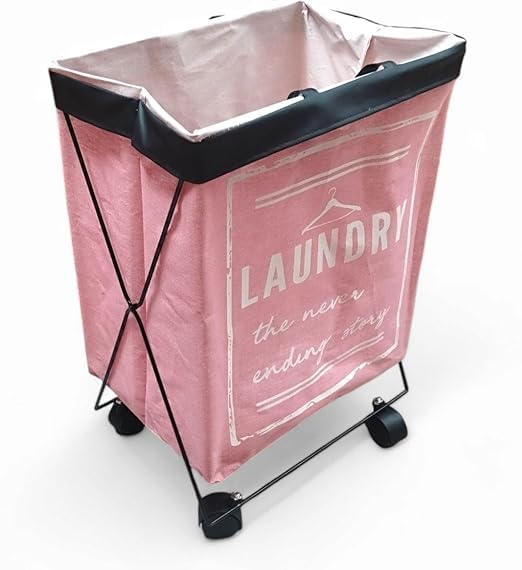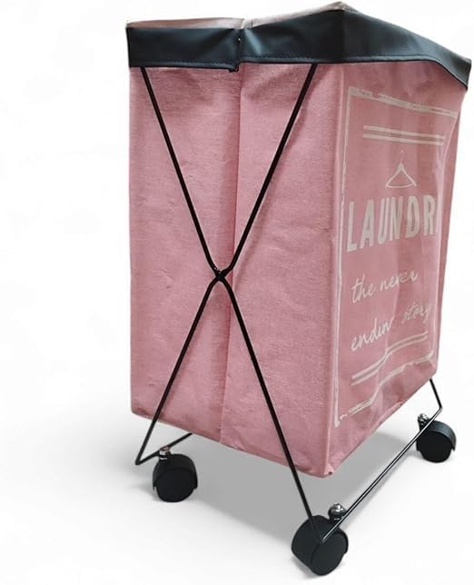 سبت غسيل محمول مع عجلات، سبت غسيل عصري قابل للطي على شكل حرف X لسهولة تخزين ونقل الملابس، قماش متين مقاوم للماء مع مقابض حمل