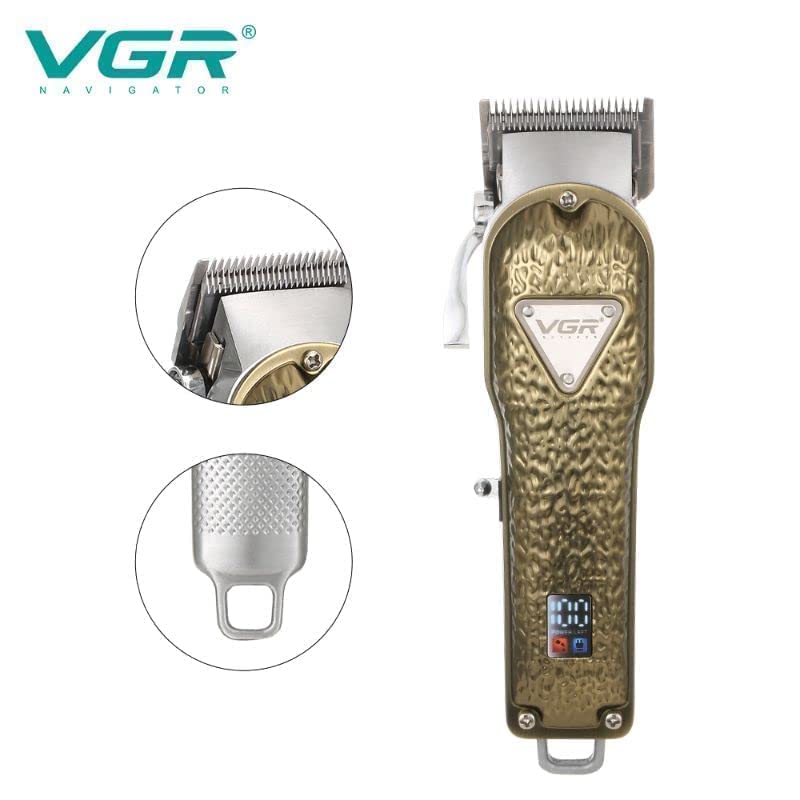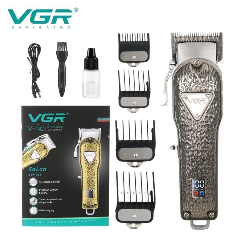 VGR V-142 Metal Barber Hair Cut Trimmer Machine Professional Cordless USB Electric Rechargeable Hair Clipper for Men