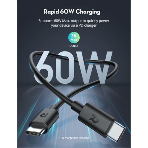 RAVPower RP-CB1022 USB-C to USB-C Cable – 2M Durable Fast Charging & Data Transfer Type-C Cable – Black, 18-Month Warranty