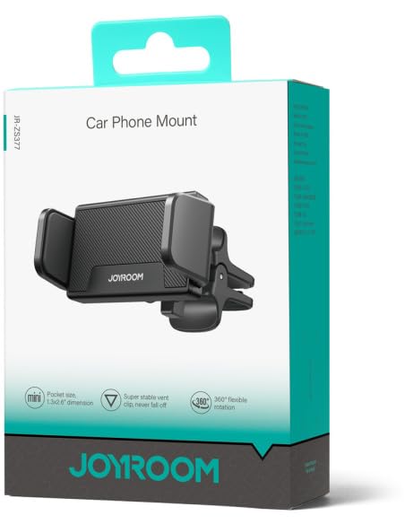 Joyroom JR-ZS377 Car Phone Holder for Air Vent, 360° Rotatable Adjustable Grip, Universal Fit for 4.5–6.7″ Smartphones – Black