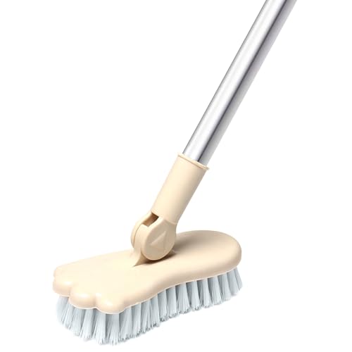 Floor Scrub Brush Bathroom Bathtub Shower Tile Grout Scrubber Rotatable 5.9inches Wide 47.2inches Long Handle Indoor Kitchen Push Broom Scrubbing Cleaning Brush for Hard to Reach Areas