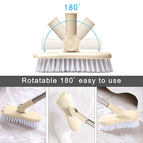- Stiff bristles scrub away the tough grime from shower, bathtub, grout, tiles, hard-to reach corners and cracks under the furniture.