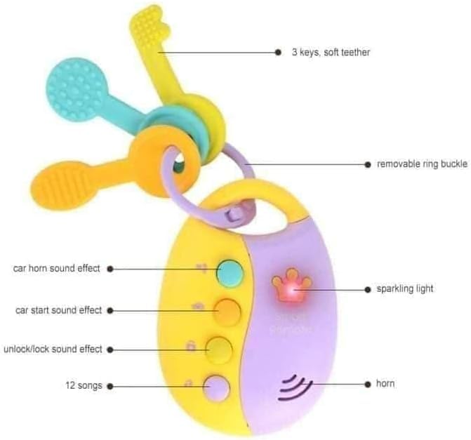 - [أصوات موسيقية وأثر تنبيهي ممتع]: تأتي المفاتيح مع 12 نغمة مختلفة وأزرار تحكم عن بعد، مما يضيف عنصر المتعة في وقت اللعب. تشمل الأصوات تنبيهات مؤثرة ومؤثرات موسيقية، مما يساعد على جذب انتباه الأطفال وتعزيز تفاعلهم مع اللعبة بطريقة ممتعة ومثيرة.