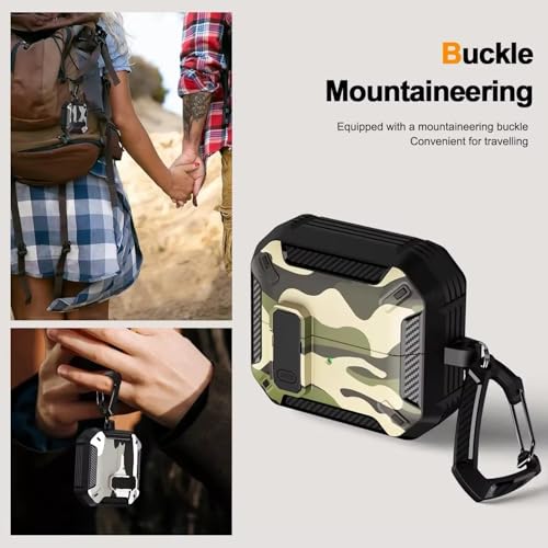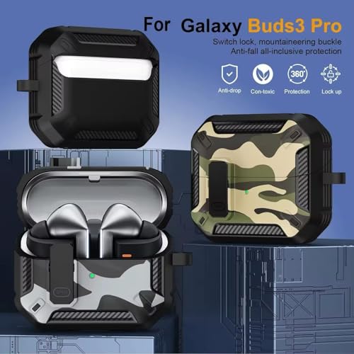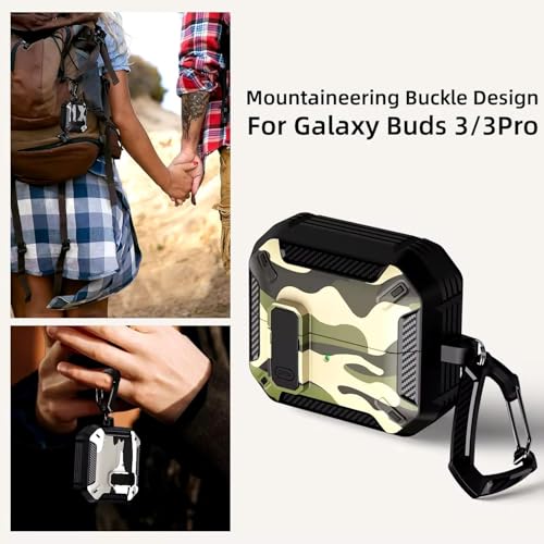 Eco Compatible with Samsung Galaxy Buds 3 Pro/Buds 3 Case Full-Body Shockproof (Secure Lock) Galaxy Buds 3 & Galaxy Buds 3 Pro (2024) with Carabiner (Camo Green)