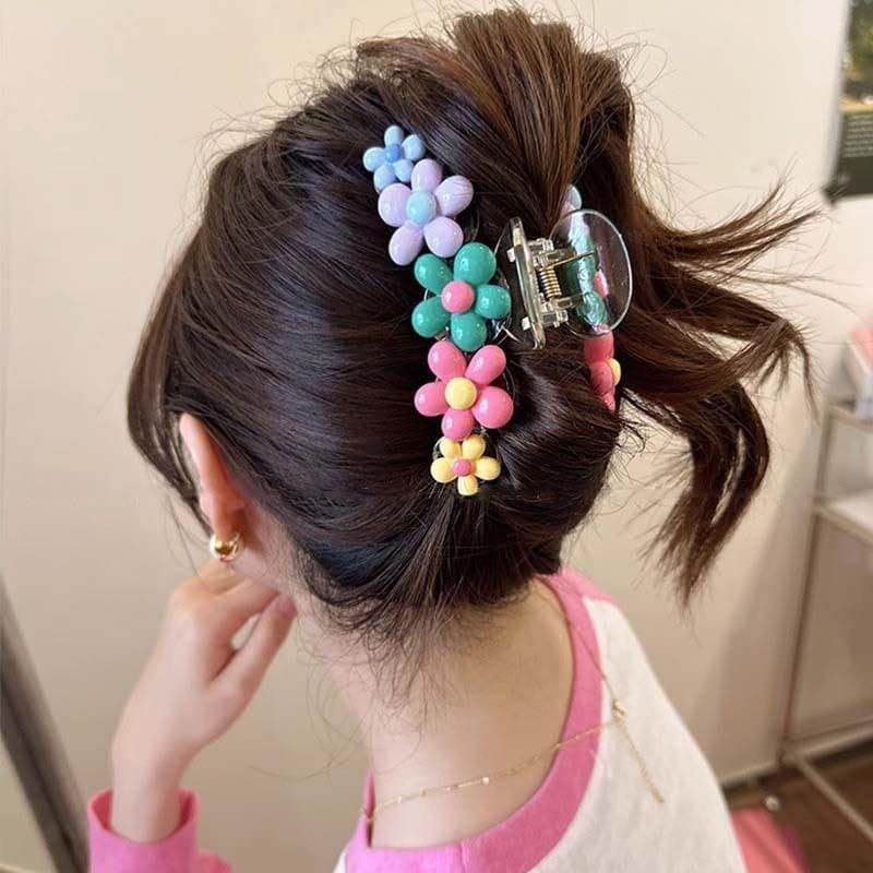 مشبك شعر إكليريك علي شكل ورد ملون خامة ممتازة غير قابل للانزلاق ، إكسسورات مناسبة للصيف و الإجازة خفيفة ع فروة الشعر تناسب الأطفال و النساء