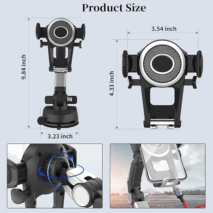 - هولدر موبايل و هاتف السيارة ، شفاط قوى على تابلوة او زجاج السيارة ، دوران 360 درجة ذراع طويل قابل للتعديل للوضع المناسب متوافق مع كل الهواتف SAcar