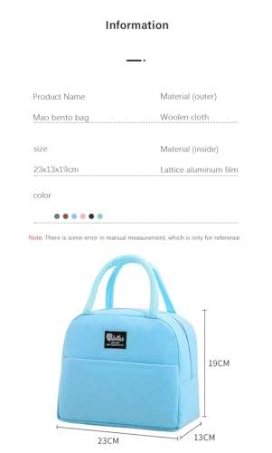 Lunch Tote bag Insulated Lunch Box Bag, Felt Aluminum Foil, Thickened Bento Bag, Large Capacity Outdoor Portable Insulation Bag for Work Office Picnic or Travel (Blue)