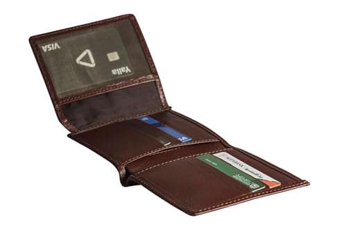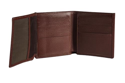 محافظ للرجال SA 116 من الجلد ثلاثية الطي الطبيعي بسعة كبيرة مع 20 حامل بطاقة وبطاقة هوية واحدة هدايا وجيبين للنقود بني