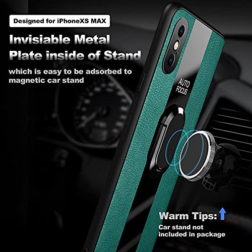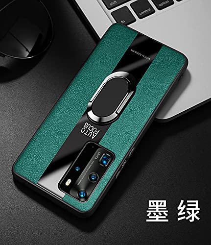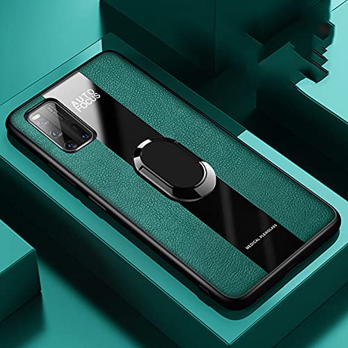 Tough Leather Back Magnetic Shockproof Drop Protection Kickstand Cover with Stand and Ring for Samsung Galaxy A52 Hard (Green)