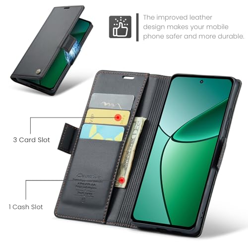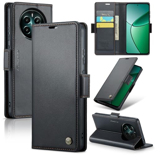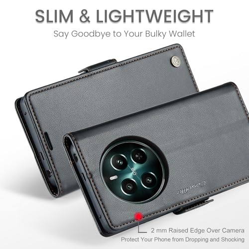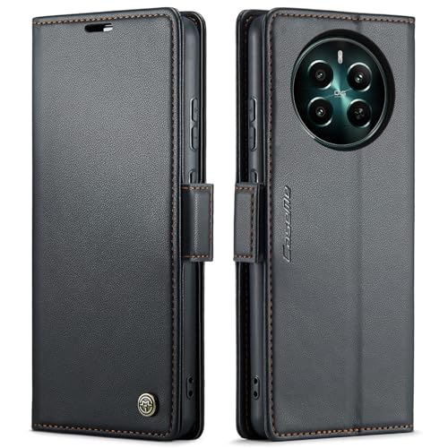 Phone Case Compatible with Realme 12 Plus/Realme 12+ / Realme 12 4G Luxury PU Leather Flip Cover Card Slot Holder Cover Compatible with Realme 12 Plus/Realme 12+ / Realme 12 4G (Black)