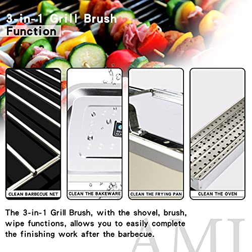 - Enjoyable Use - Hard plastic non-slip handle, reasonable structure design, light and flexible to use. The three-in-one barbecue brush, with the shovel, brush, wipe functions, allows you to easily complete the finishing work after the barbecue.