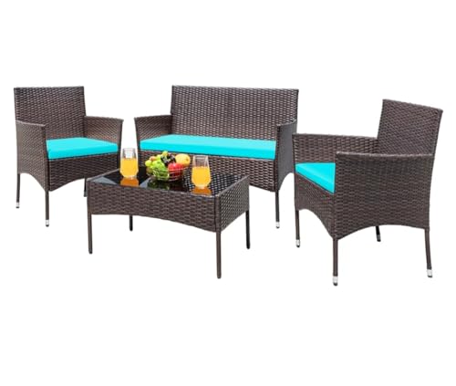 Sweet Furniture Patio Furniture Set of 4, Outdoor Rattan Chairs for Garden, Backyard, Porch, Poolside with Soft Cushion and Table Without Glass, Brown Brown