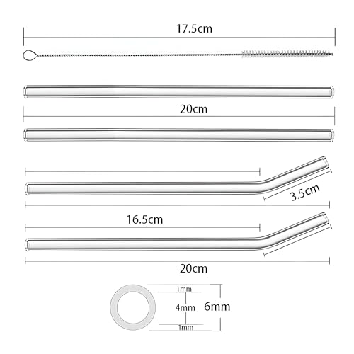 - Package includes: glass straw (8*20mm) x4pcs, clear brush x1 Inner Diameter 5mm, Outer Diameter 8mm