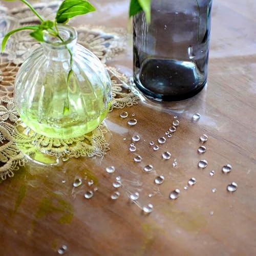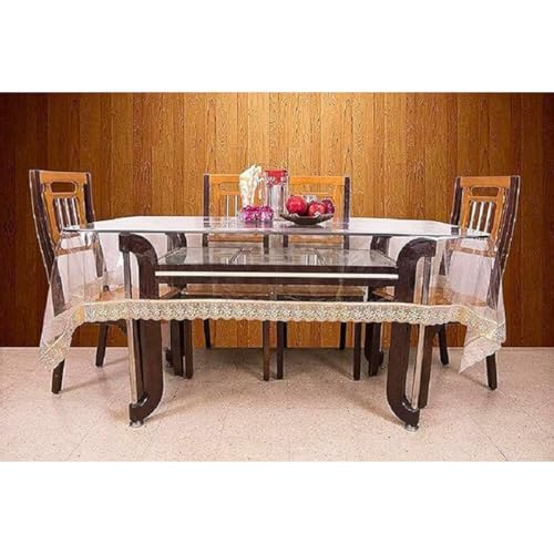 مفرش طاولة بتصميم مستطيل فينيل وبلاستيك بي في سي عالي المتانة، شفاف ومقاوم للماء مع حواف مكرمية من الدانتيل، شديد التحمل بمقاس 1.52 × 2.28 متر للمطبخ والمنزل والأماكن الداخلية والخارجية