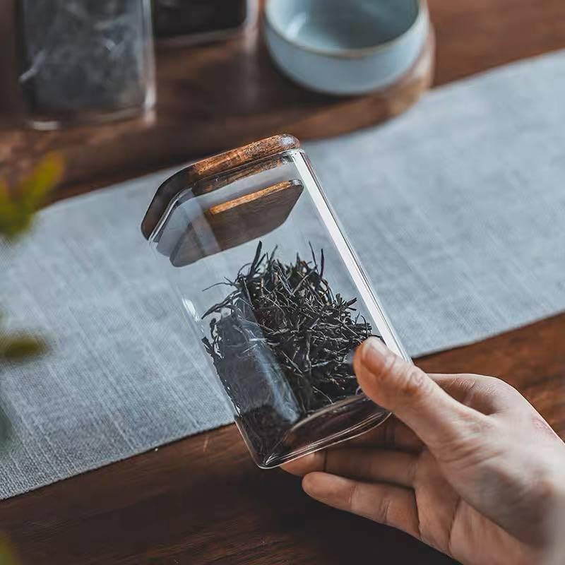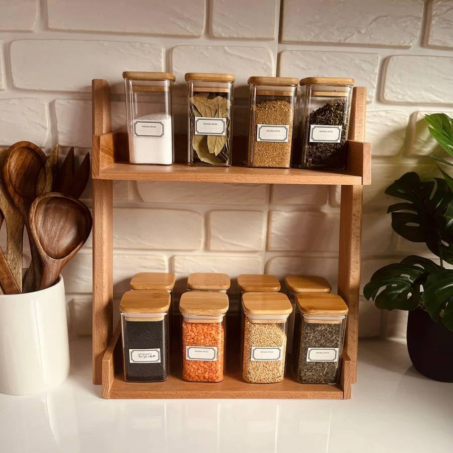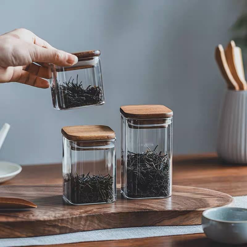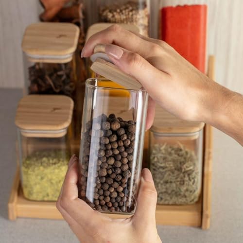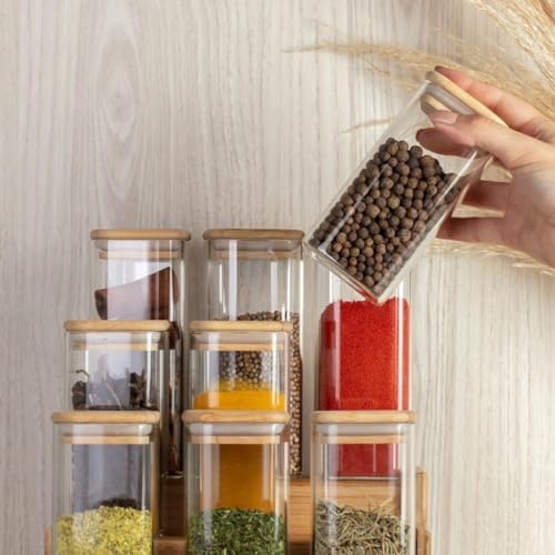 FASHION.HOME" Square Glass Spice Jars Set – Perfect Capacity with Airtight Wooden Lid to Preserve Flavor – 2 Pieces