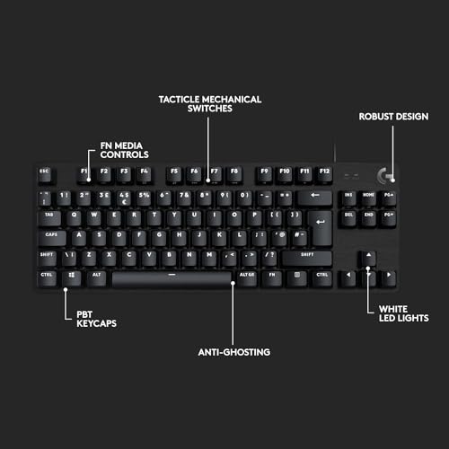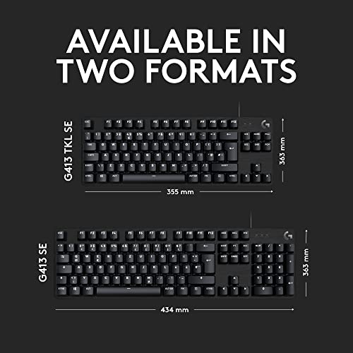 Logitech G413 TKL SE Mechanical Gaming Keyboard, PBT Keycaps, White Backlight, Anti-Ghosting, Wired USB, Black
