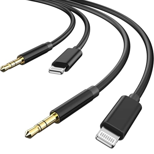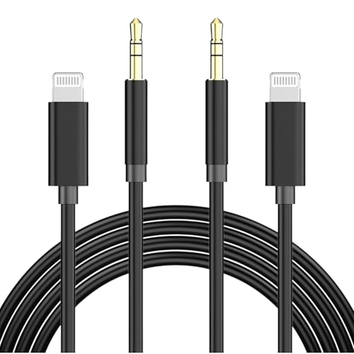 Aux Compatible With iPhone, Apple MFi Certified Lightning to 3.5mm Aux Cable for Car Compatible with iPhone 12 11 XS XR X 8 7 6 iPad iPod to Car Home Stereo Speaker Headphone, 3.3FT Black (2, Black)