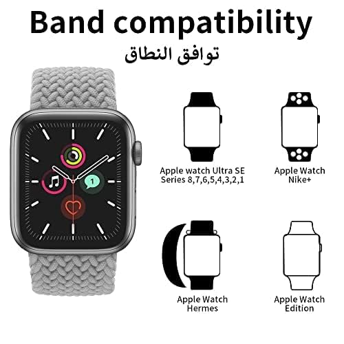 1 × سوار مضفر من القماش المطاطي مقاس 49 - 45 - 42 - 44 مم لساعة ابل 8 - - 2 - 3 - 4 - 5 - 6 - 7 L رمادي فاتح للبالغين الجنسين