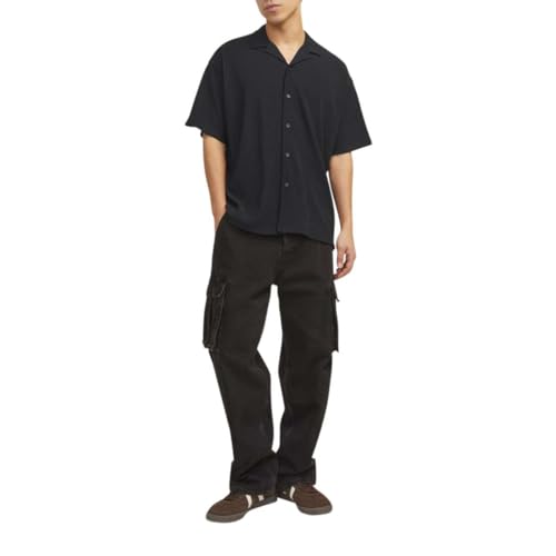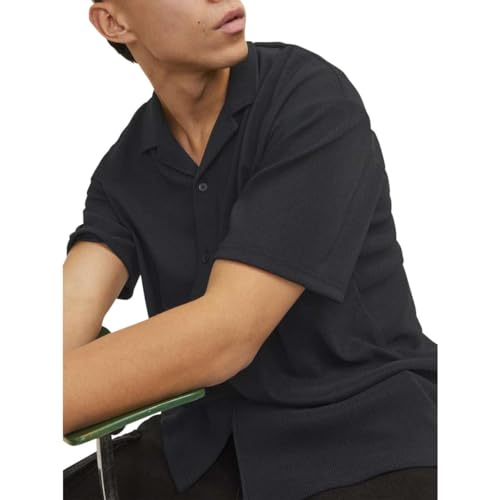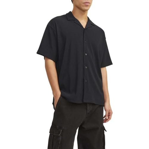 Jack & Jones Men's Valencia Ottoman Resort Shirt, L - Black